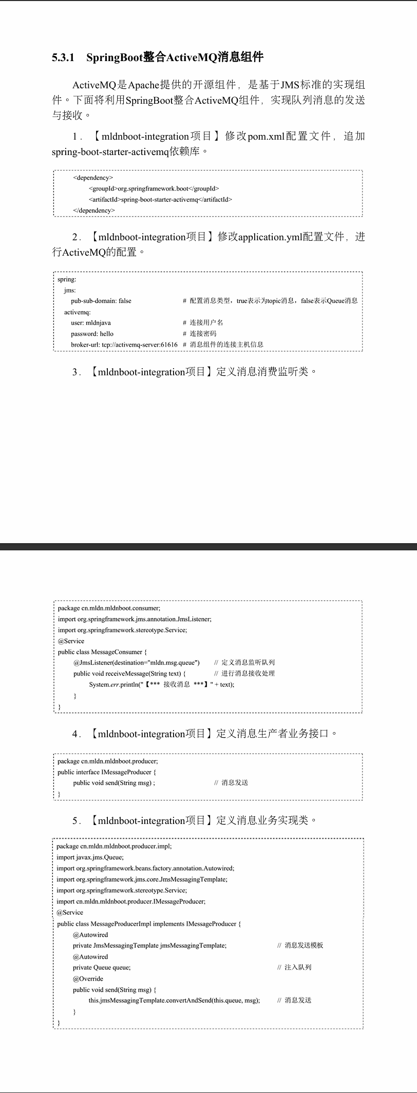 在分布式系统设计中,消息中间件是实现系统解耦、异步通信、流量削峰和最终一致性的重要技术手段。Spring Boot 作为当前主流的 Java 微服务开发框架,提供了对多种消息中间件的良好支持。下面我们将从 JMS 标准(以 ActiveMQ 为例) 和 AMQP 标准(以 RabbitMQ 和 Kafka 为例) 两个方向,详细讲解它们与 Spring Boot 的整合方式。